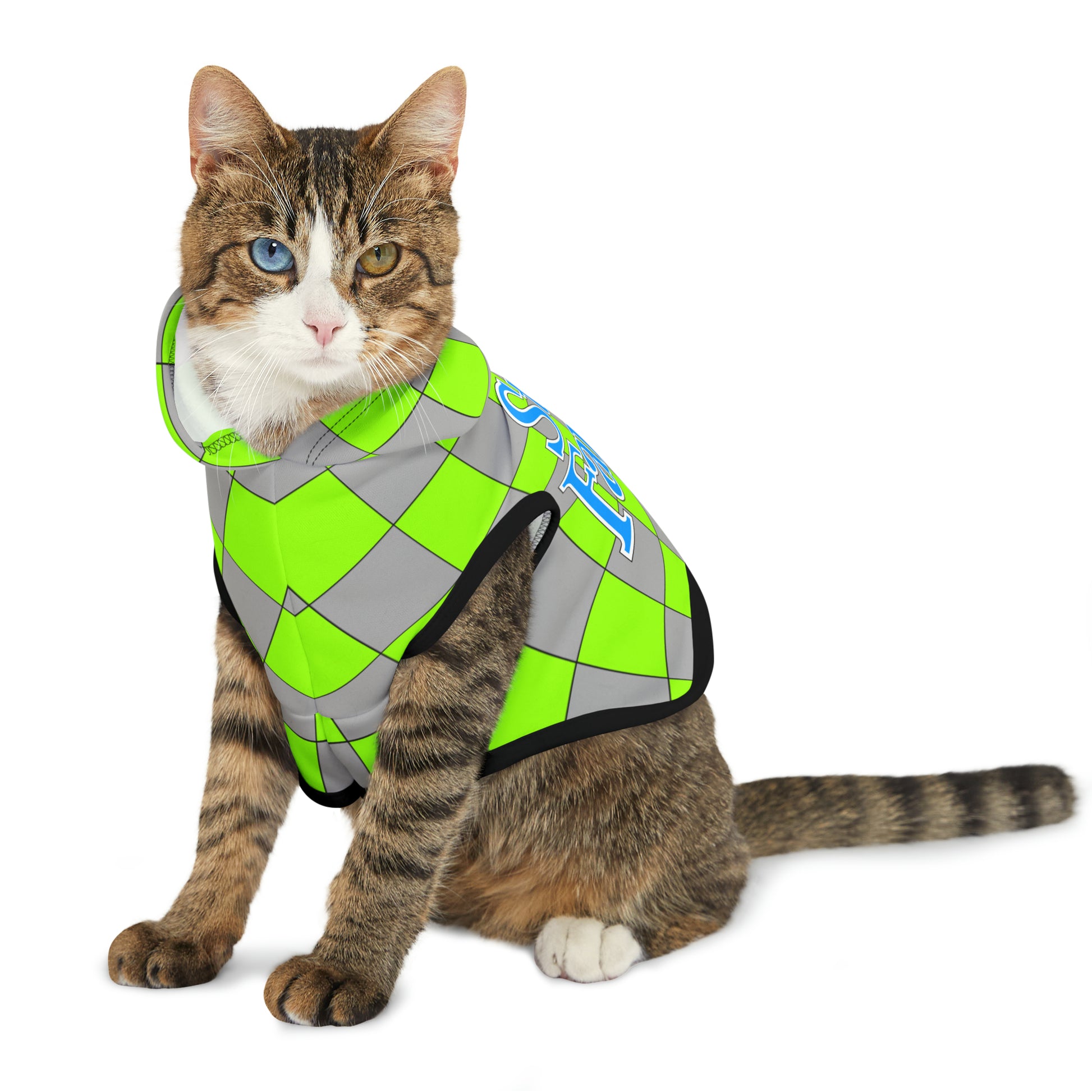 [This is NOT a Hi-Viz Green or Reflective] Pet parents around the world here is a stylin' dog hoodie for your four-legged family member. With 5 sizes to choose from, you're bound to deliver a great fit. Choose the graffiti splash with artwork in vivid colors. .: Material: 100% polyester .: Available in 5 different sizes .: Assembled in the USA