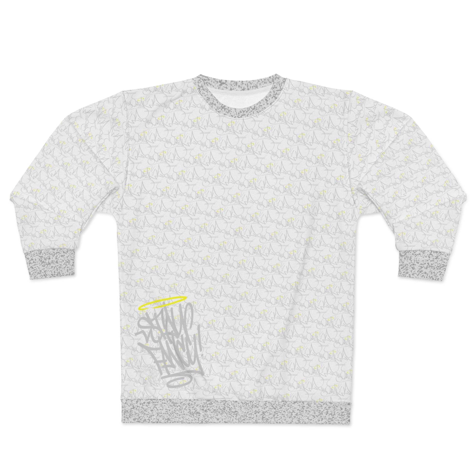 This all over print crewneck sweatshirt is the perfect example of cool. This fleece is custom cut and sewn, featuring a crew neck and set-in sleeves to keep you warm. .: 86% Polyester 14% Cotton .: Crew neck .: Classic Fit .: Custom cut and sewn .: White thread color .: Assembled in the USA